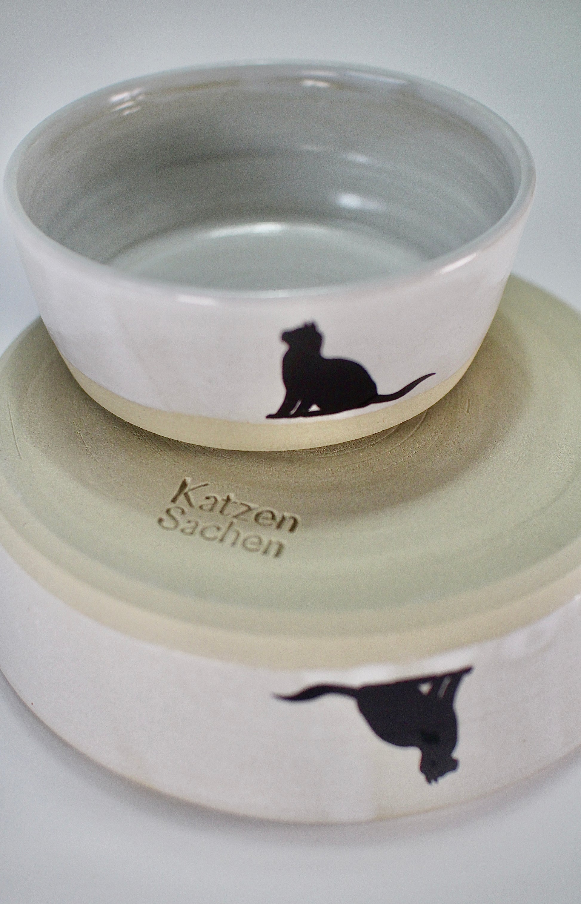 Verwöhnen Sie Ihren Liebling mit dem handgefertigten Einzelstück KatzenSachen-Fressnapf aus Steinzeug! Hergestellt in Deutschland, überzeugt er nicht nur optisch, sondern auch durch seine perfekte Form, die Schnurrhaarirritation vermeidet und durch den hohen Rand das Herausfallen von Futter. Ein weiterer Blickfang auf dem Napf ist die eingebrannte Katze auf der weißen Glasur. Ein perfekter Begleiter für Ihre Katze!