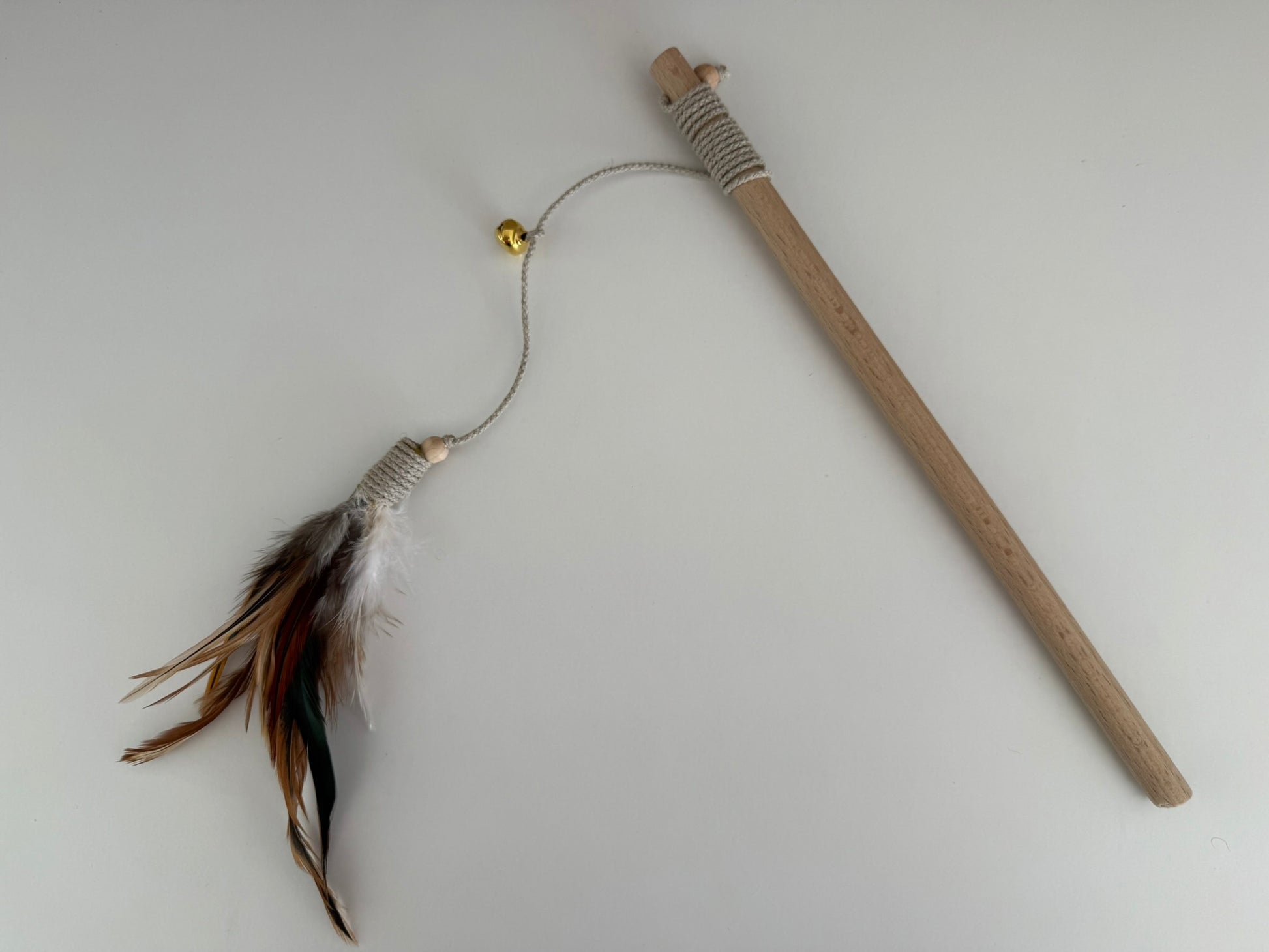 Jede Angel wird in sorgfältiger Handarbeit gefertigt und ist ein Unikat, das nicht nur durch Qualität, sondern auch durch Charakter überzeugt. Ob wilde Sprünge, blitzschnelle Pfotenangriffe oder neugieriges Anschleichen – dieses Spielzeug bringt Leben in den Alltag deiner Katze und stärkt gleichzeitig die Bindung zwischen euch. Die Abenteuer-Federangel ist mehr als nur ein Spielzeug – sie ist der Schlüssel zu gemeinsamen Momenten voller Freude und Bewegung.