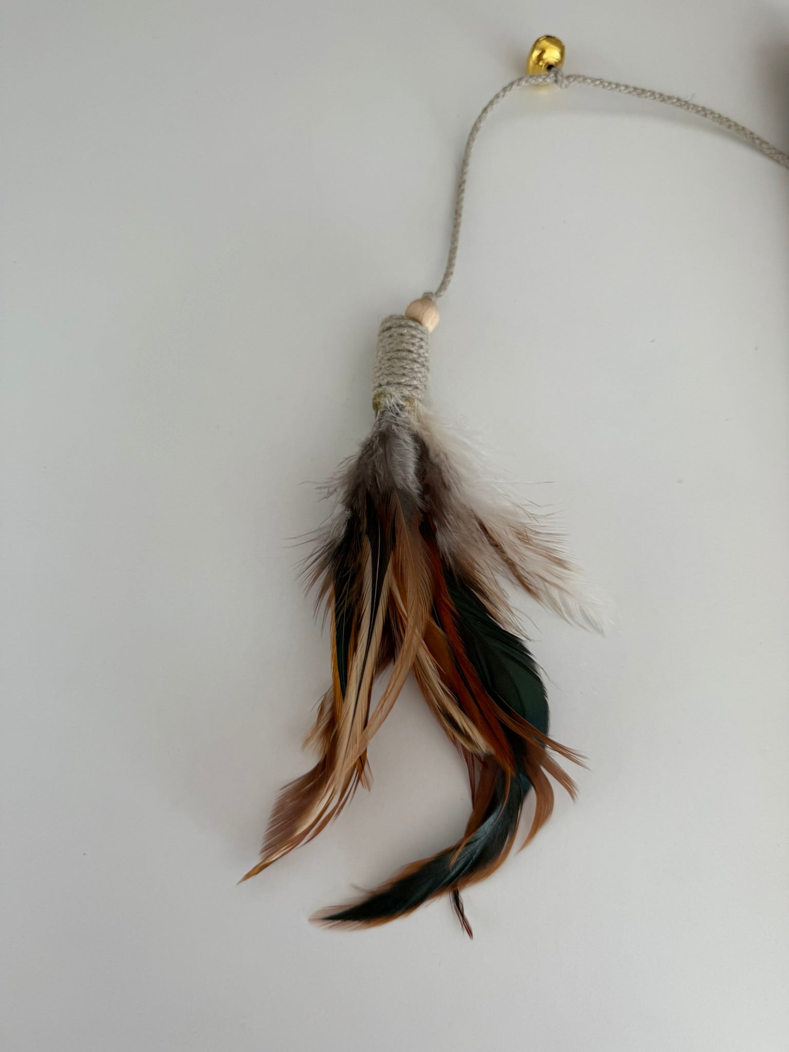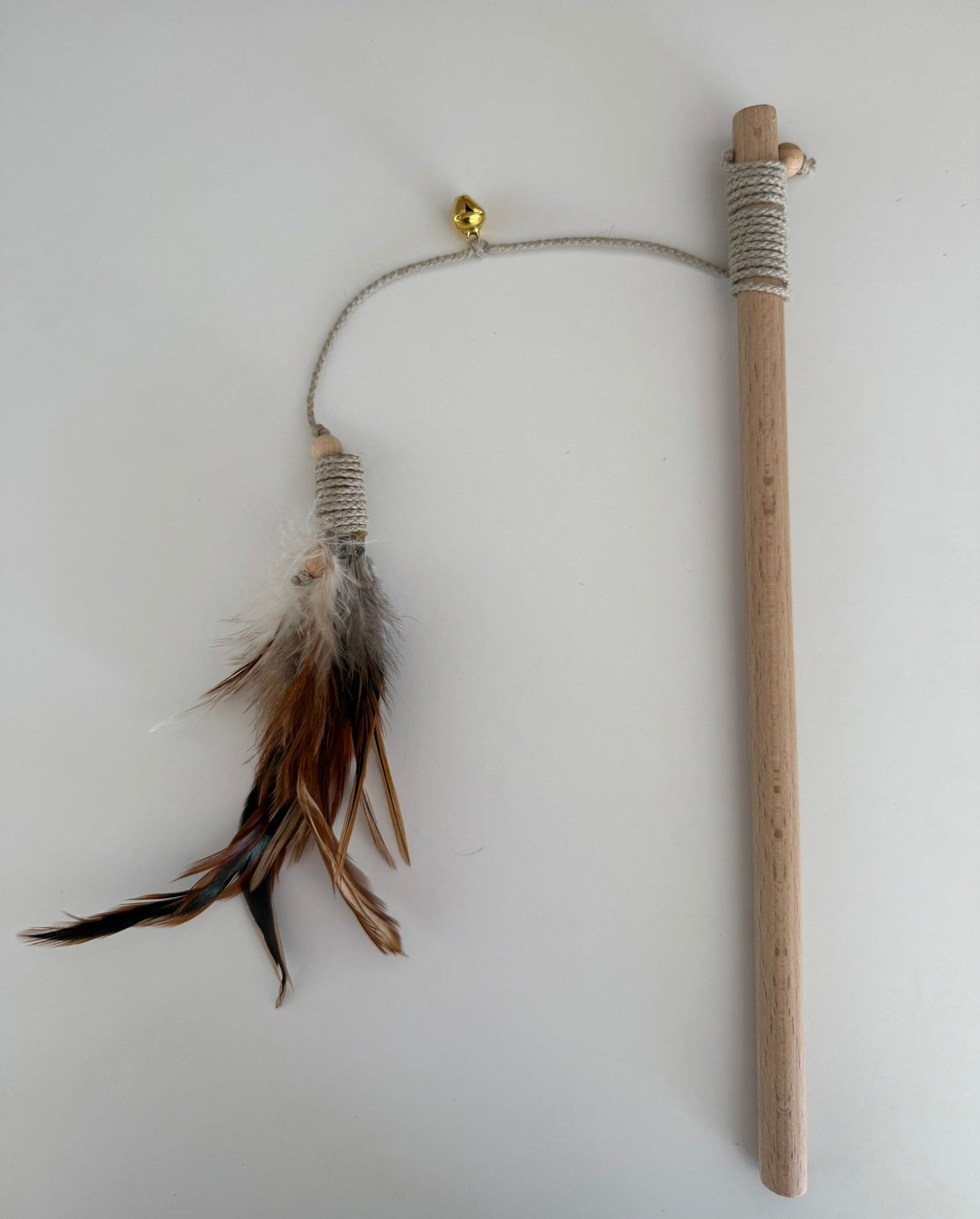 Tauche ein in die Welt des spielerischen Jagdinstinkts mit unserer handgefertigten Abenteuer-Federangel für Katzen. Dieses liebevoll gestaltete Spielzeug verwandelt jede Spielrunde in ein aufregendes Erlebnis voller Bewegung, Spannung und Neugier. Die Angel besteht aus echten, naturbelassenen Federn, die bei jeder Bewegung lebendig flattern und den natürlichen Jagdtrieb deiner Katze wecken. Eine zarte Glocke an der Angel sorgt für zusätzlichen Reiz – ihr sanfter Klang zieht die Aufmerksamkeit deiner Samtpfote magisch an und macht das Spiel noch faszinierender.